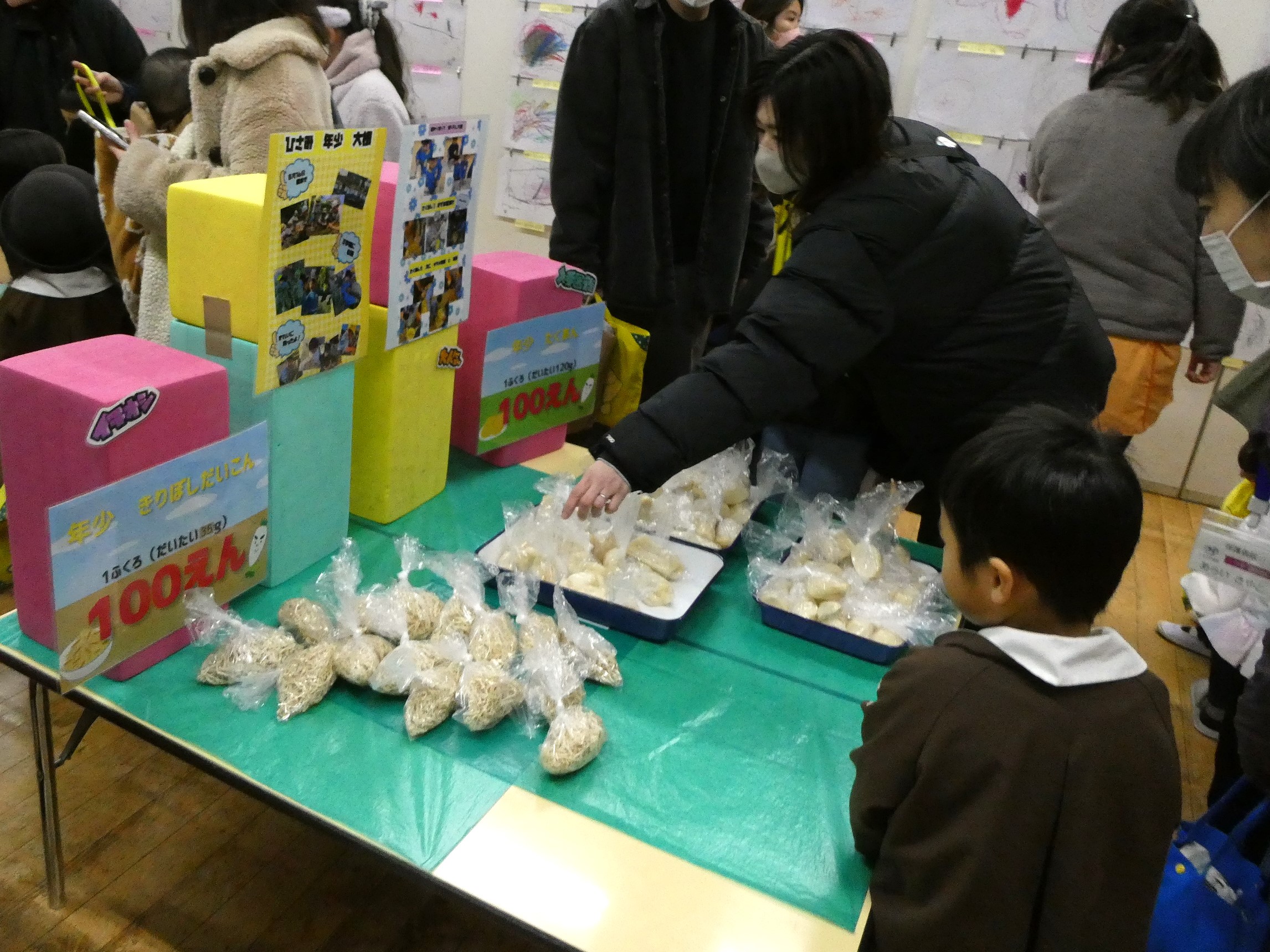 園の畑で育てたダイコンで作った『たくあん』と『切り干し大根』を販売!昨年も大好評だったことから「これ美味しいんだよね!」と、手に取る姿も。