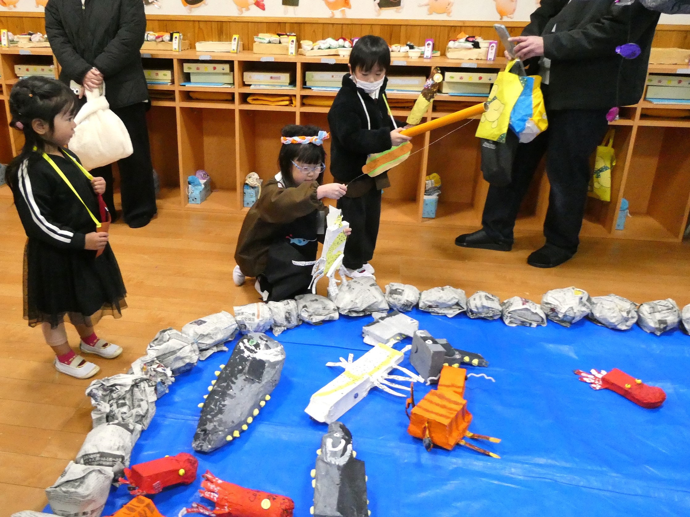 まずは魚釣り体験!釣り上げると店員さんがチケットを渡してくれます!