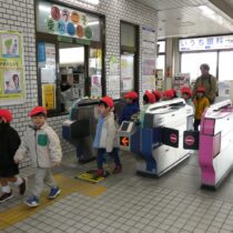 駅員さんに「ありがとうございました!」と言って改札を出ます。ロータリーで待つ園バスに乗ると「たのしかったね~」「おなかすいた~」。子ども達は大冒険を終えて目を輝かせていました!
