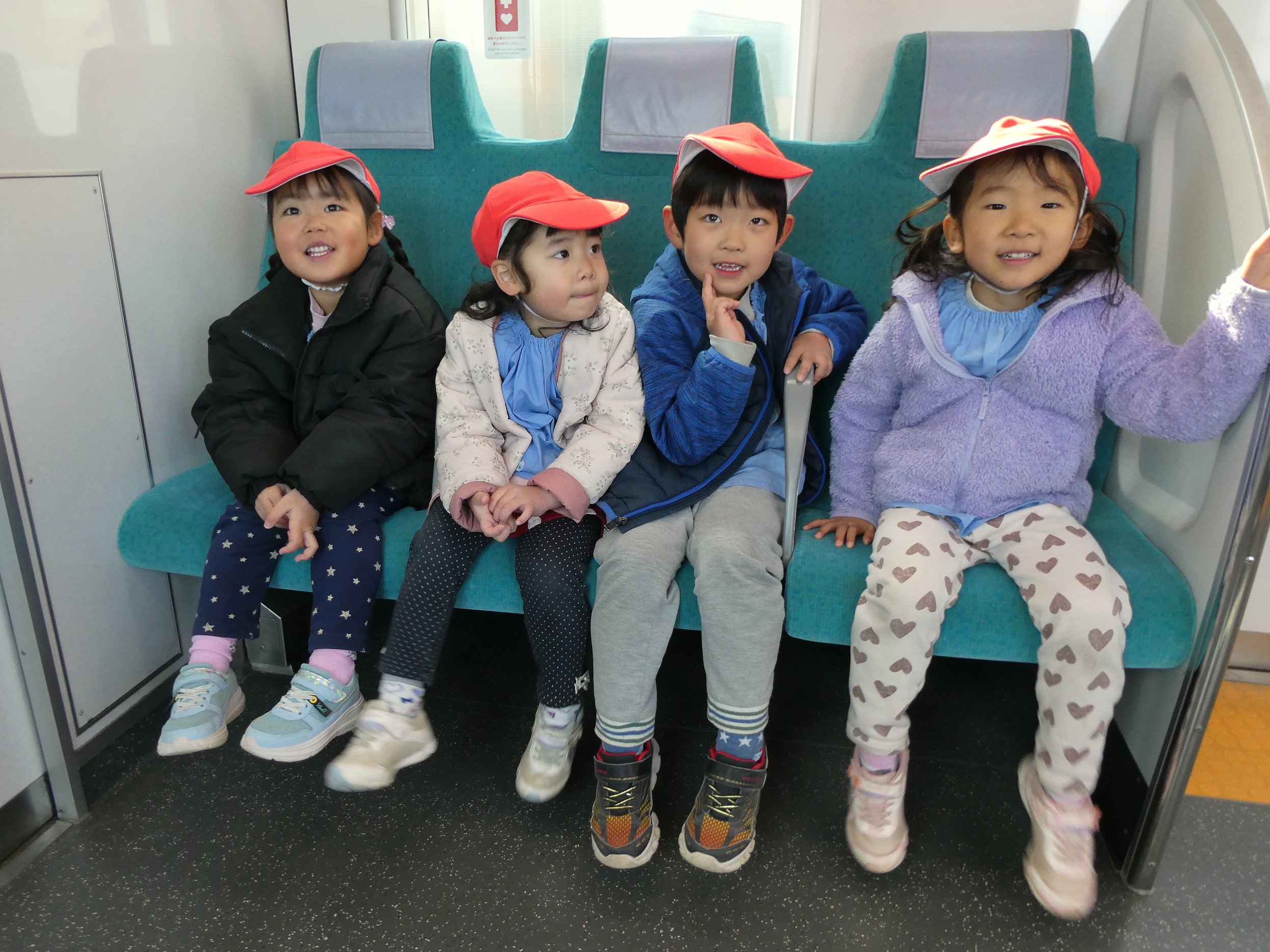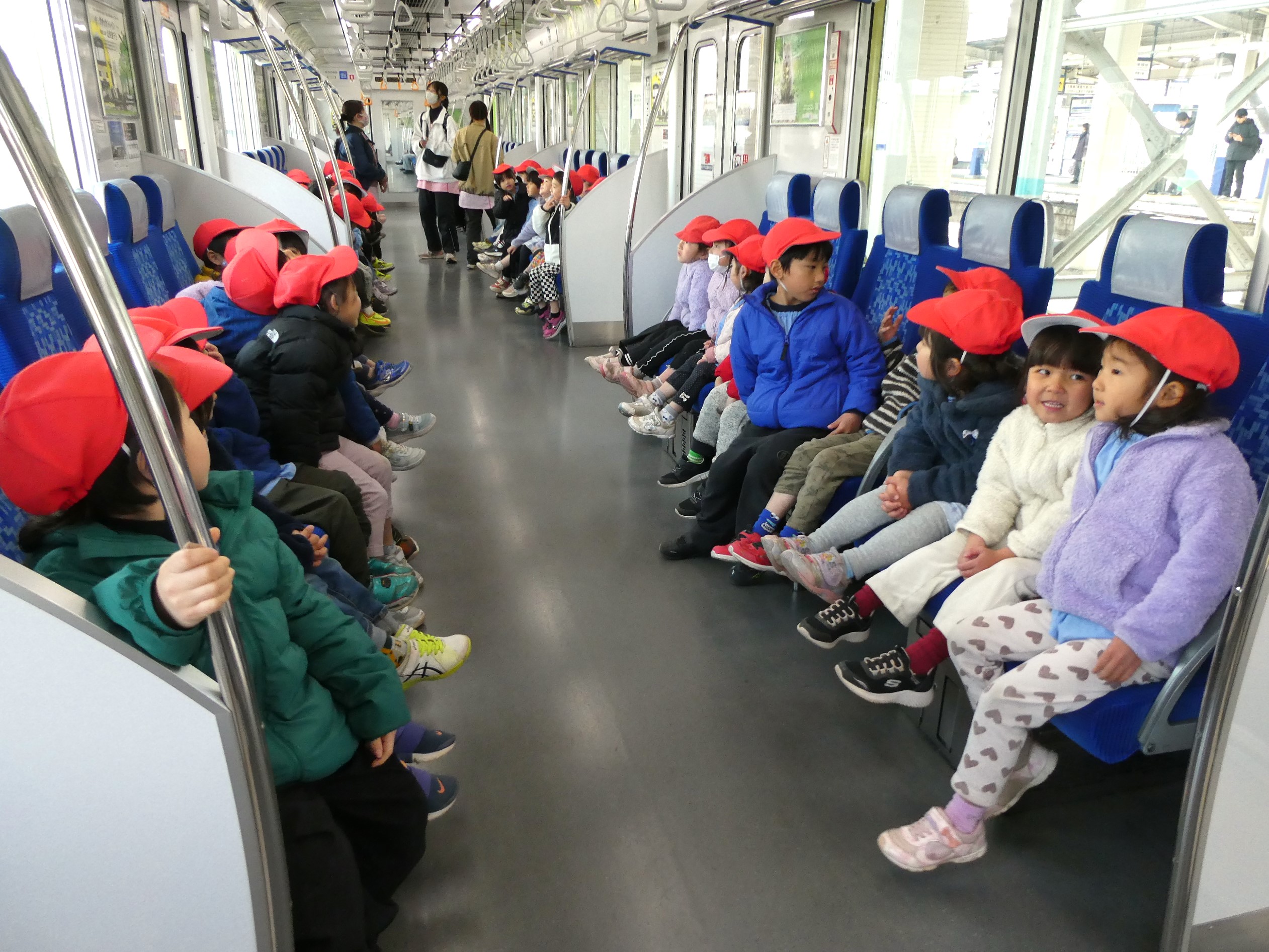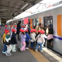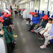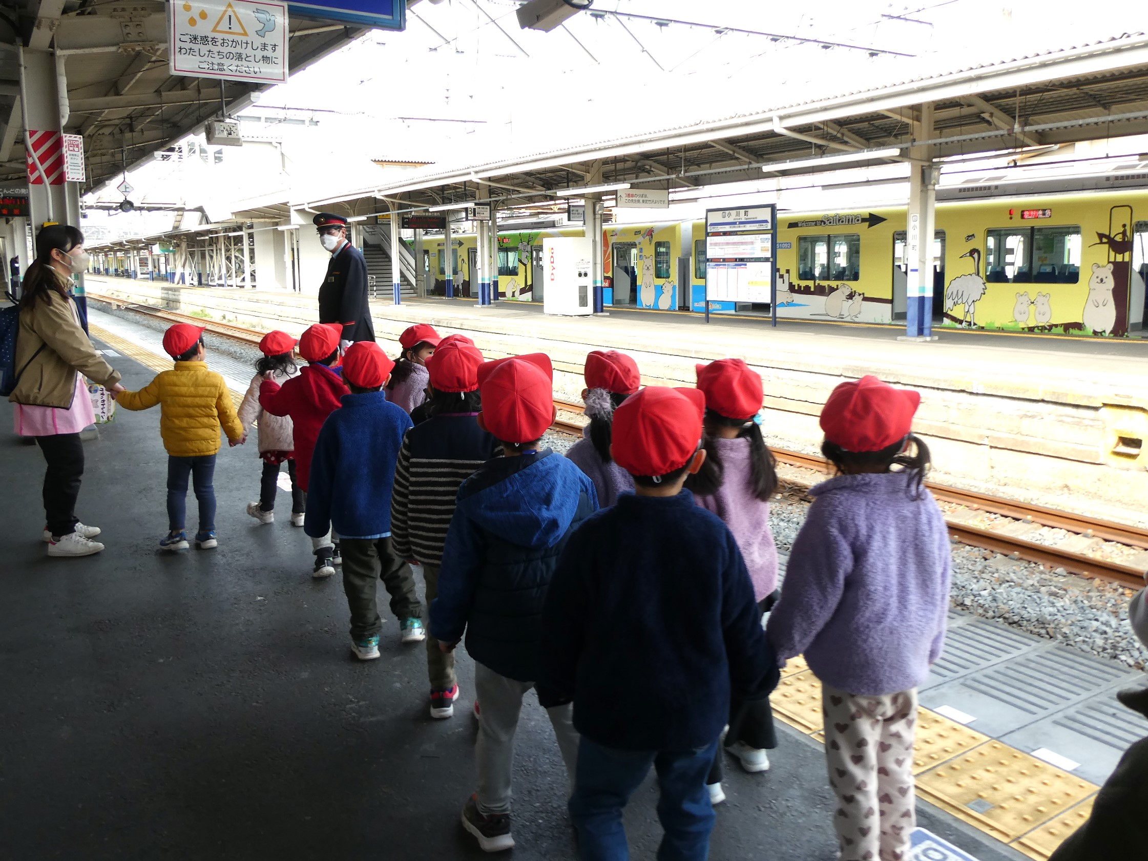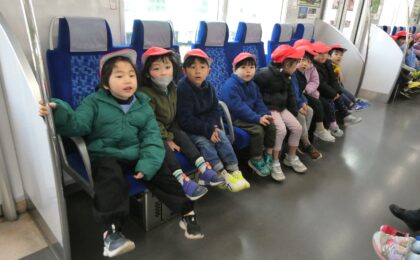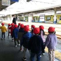 2月20日(金)社会体験として、年中児が電車に乗ってお出かけをしました。東武東上線東松山駅から下り電車に乗って小川町駅まで!小川町駅では駅周辺をぐるりと散歩し、また電車に乗って東松山駅まで戻ってくるコース!子ども達の中には初めて電車に乗車する子もいて、少し緊張気味でしたが、みんなと一緒にワイワイと楽しみ、貴重な体験となったようです。