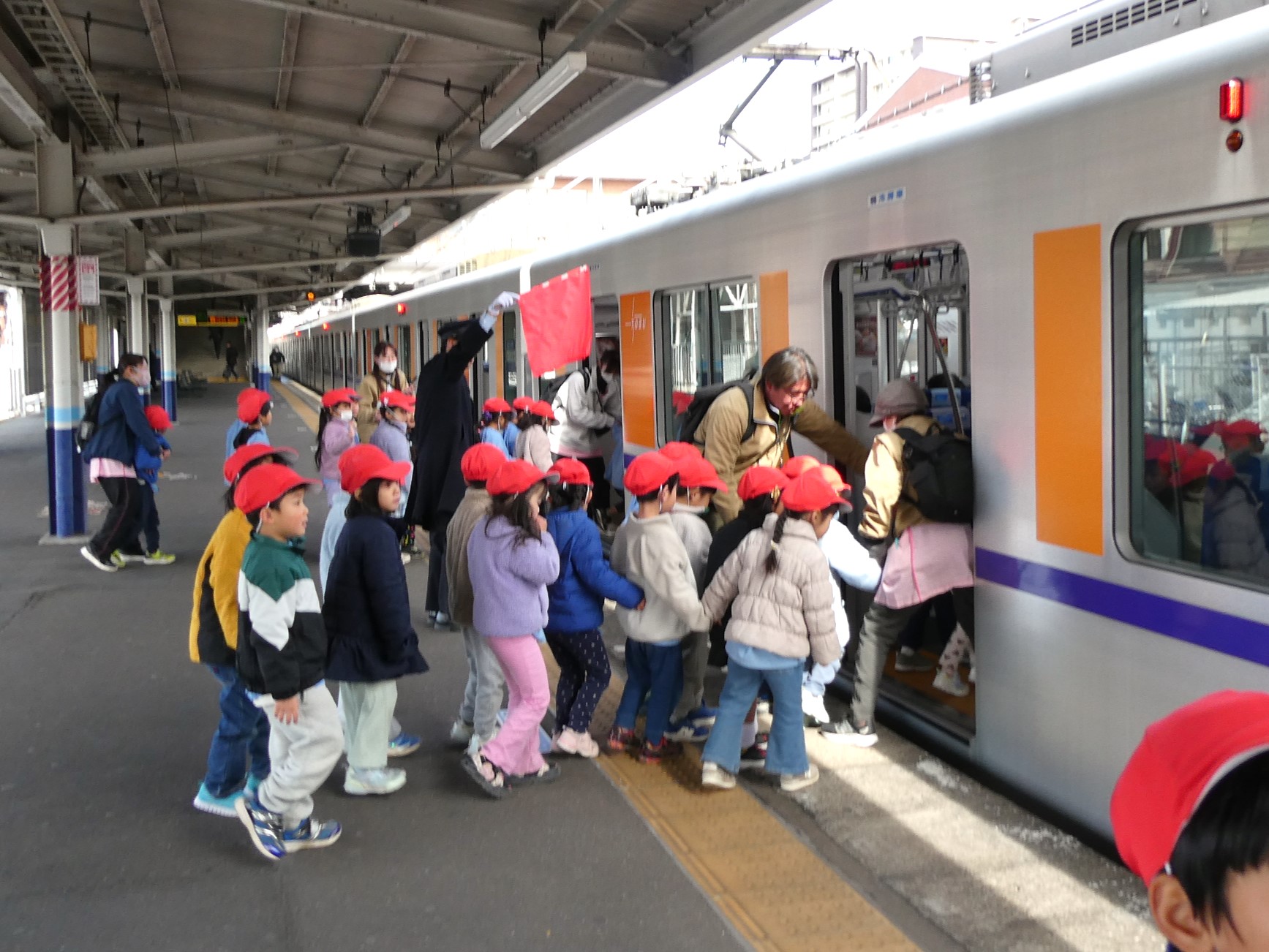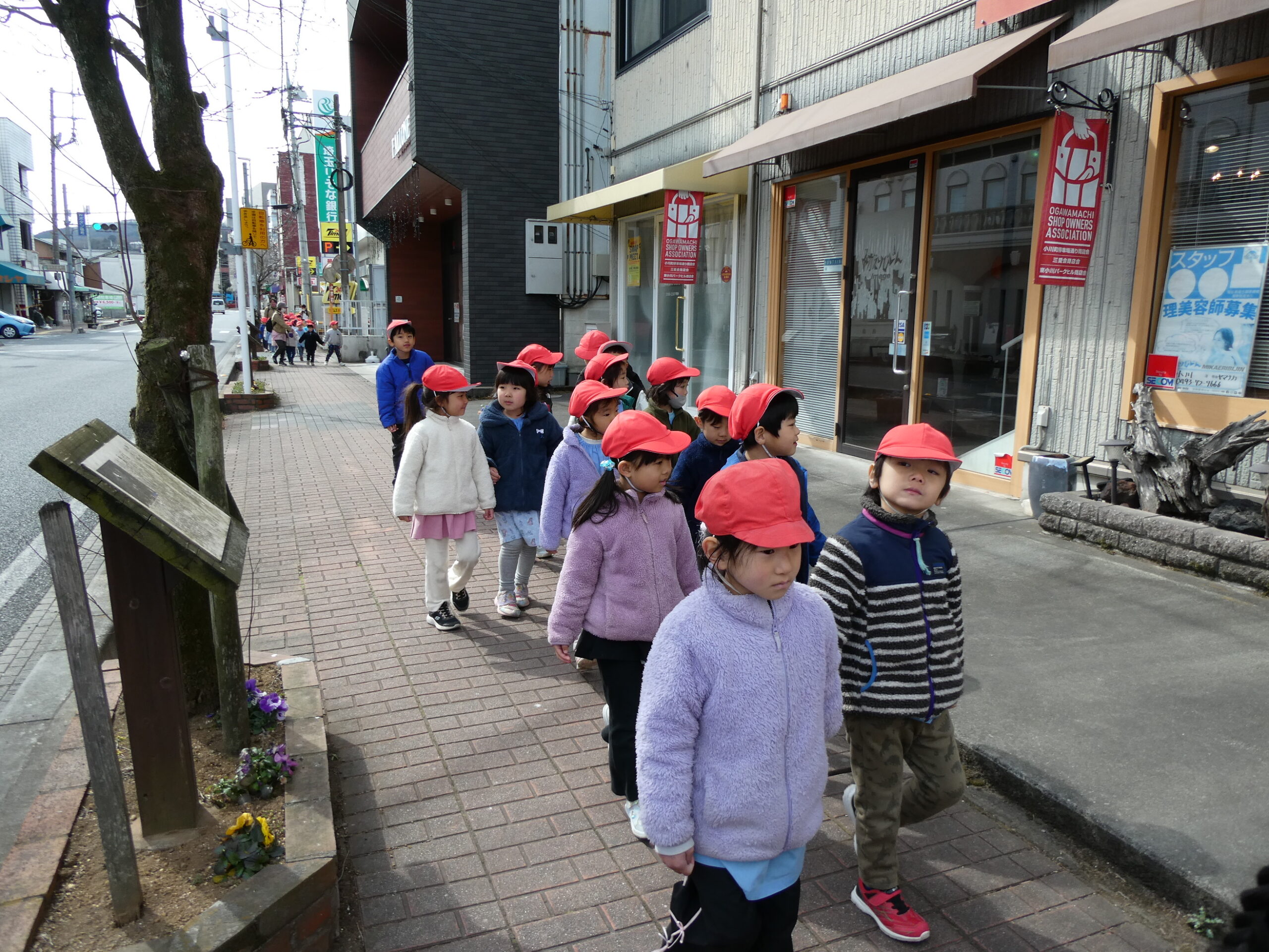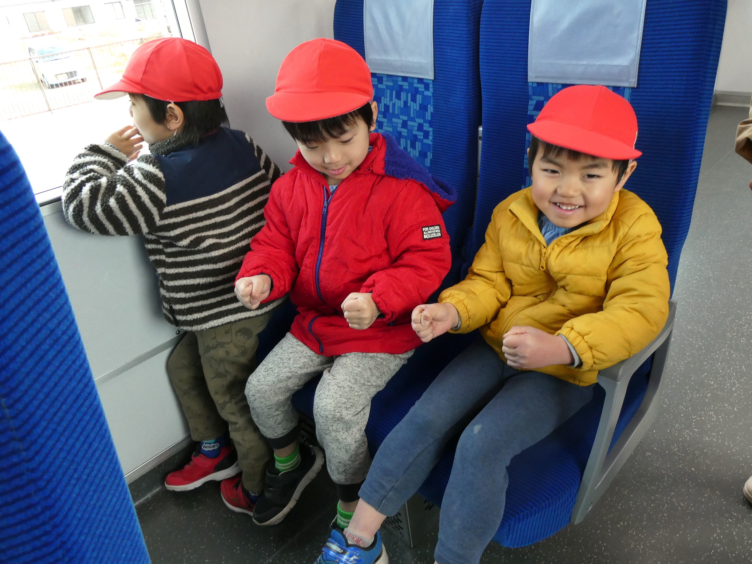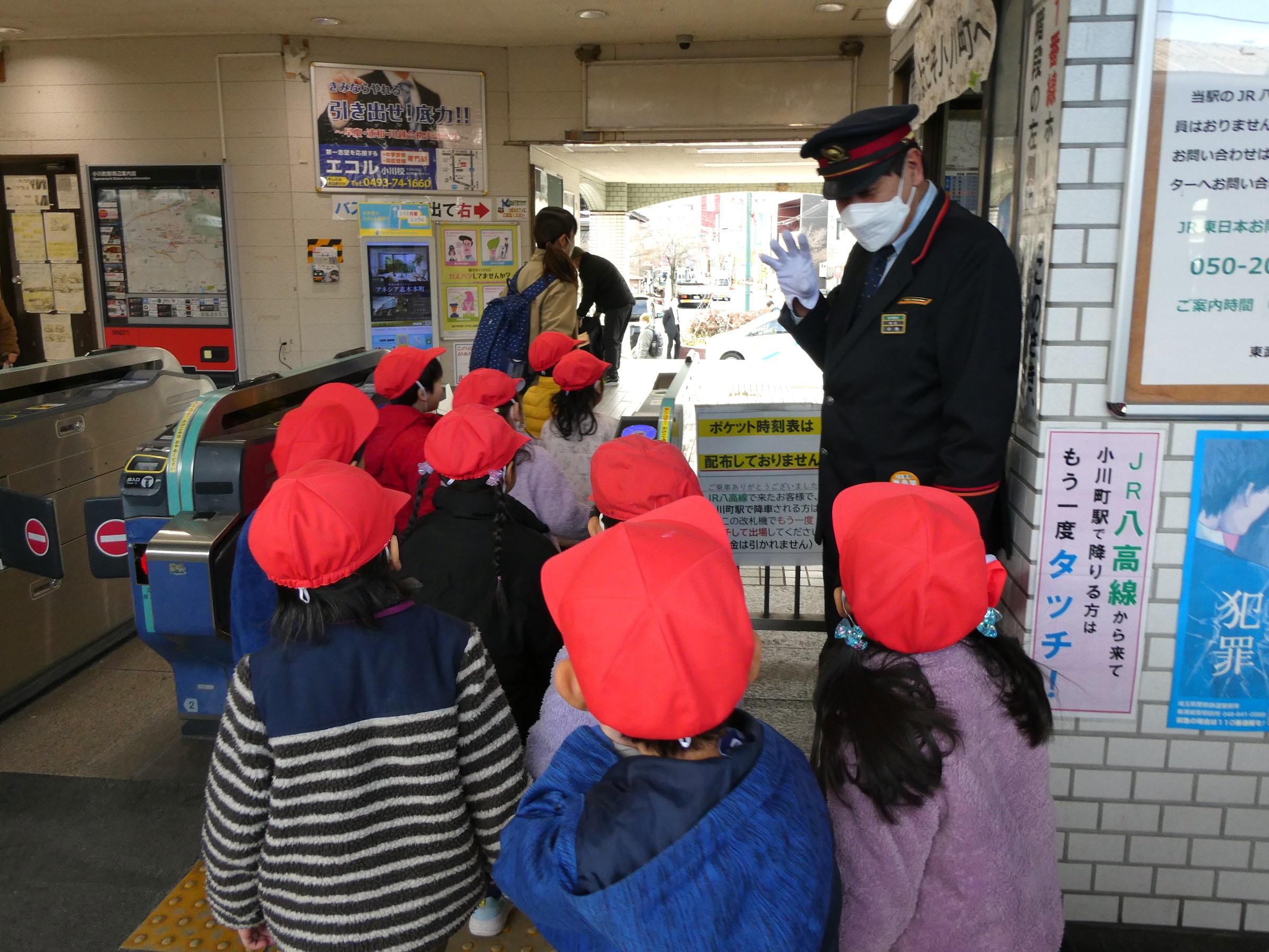 2月20日(金)社会体験として、年中児が電車に乗ってお出かけをしました。東武東上線東松山駅から下り電車に乗って小川町駅まで!小川町駅では駅周辺をぐるりと散歩し、また電車に乗って東松山駅まで戻ってくるコース!子ども達の中には初めて電車に乗車する子もいて、少し緊張気味でしたが、みんなと一緒にワイワイと楽しみ、貴重な体験となったようです。