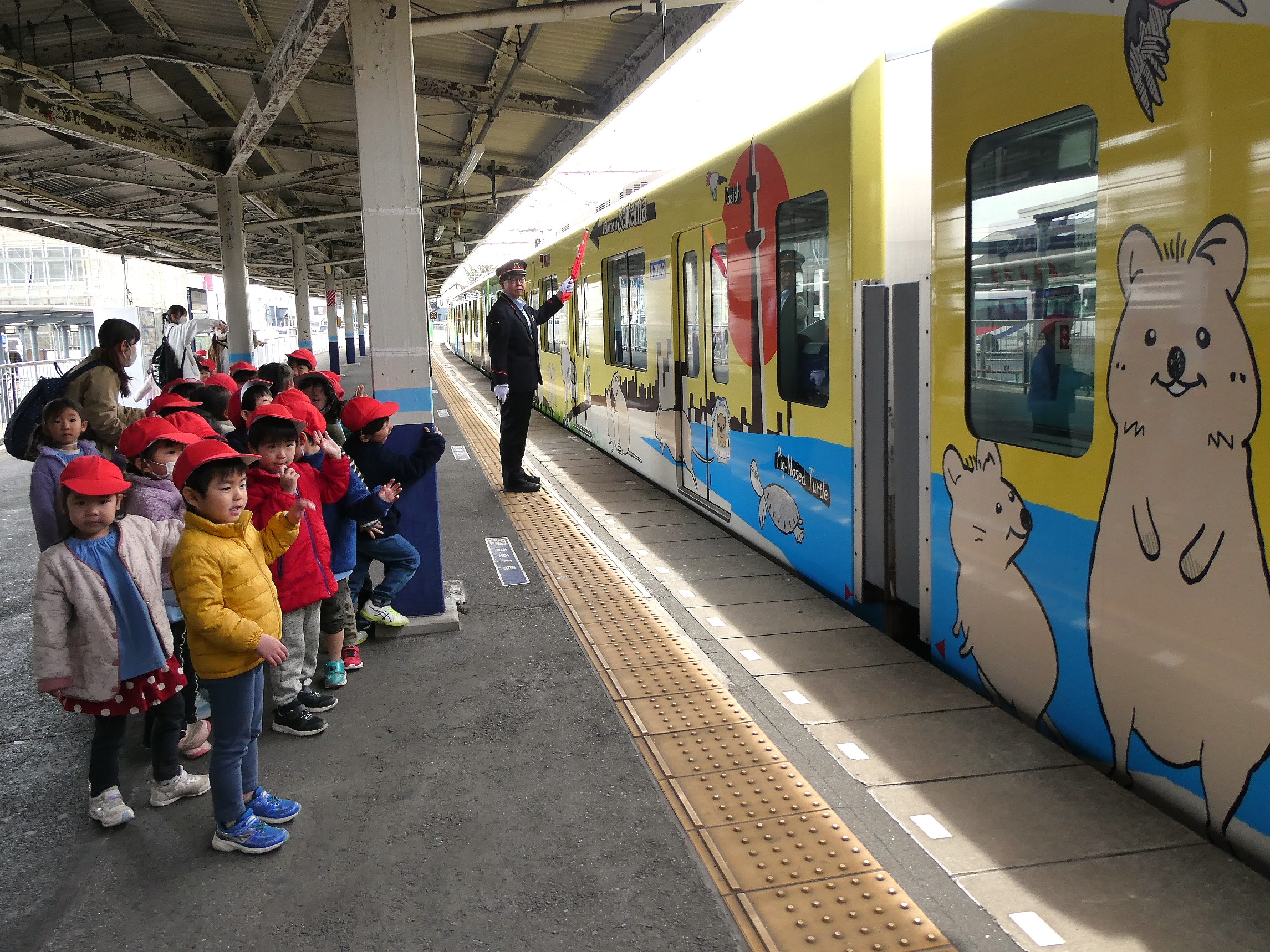 東松山駅で電車を降りると、クオッカトレインに「バイバ~イ!」「ありがとう~」
