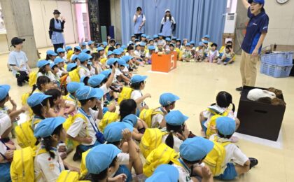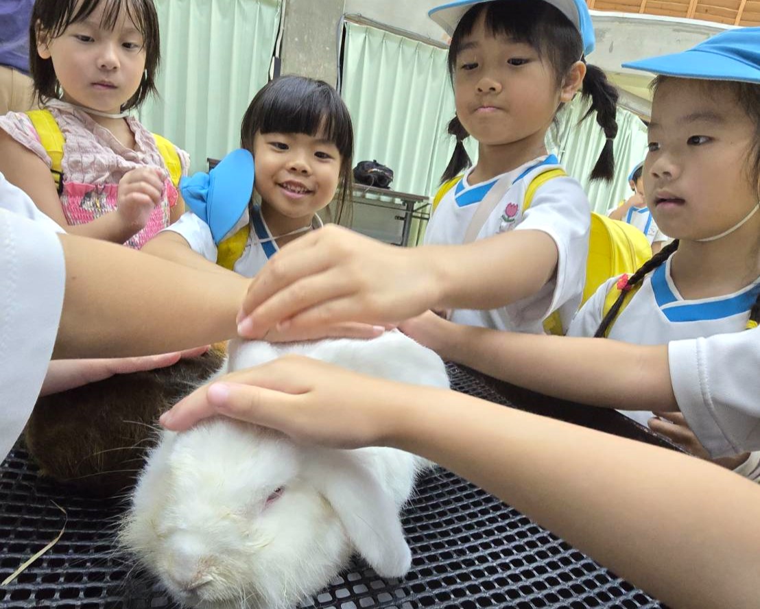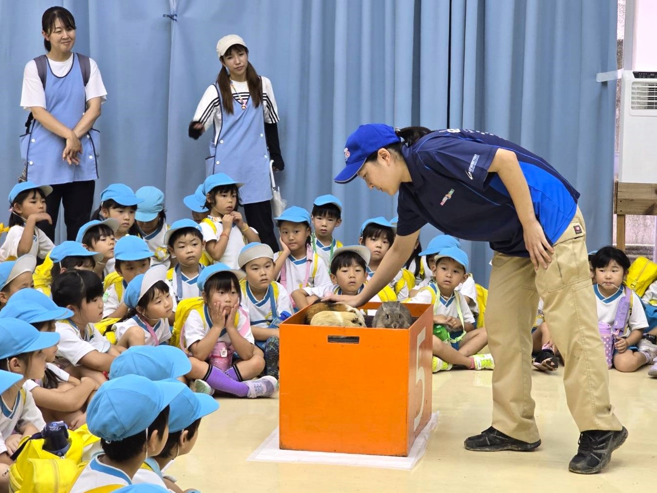 9月12日(金)年長児は子ども動物自然公園にて『動物お話会』に参加しました。飼育員さんに動物と仲良くなる方法や、ウサギやモルモットの抱っこのやり方など…優しく教えていただきました。早速、園で飼育しているウサギのショコラのことを思い浮かべ、今度抱っこするときはどうしたらいいのか、話し合う姿も見られました。