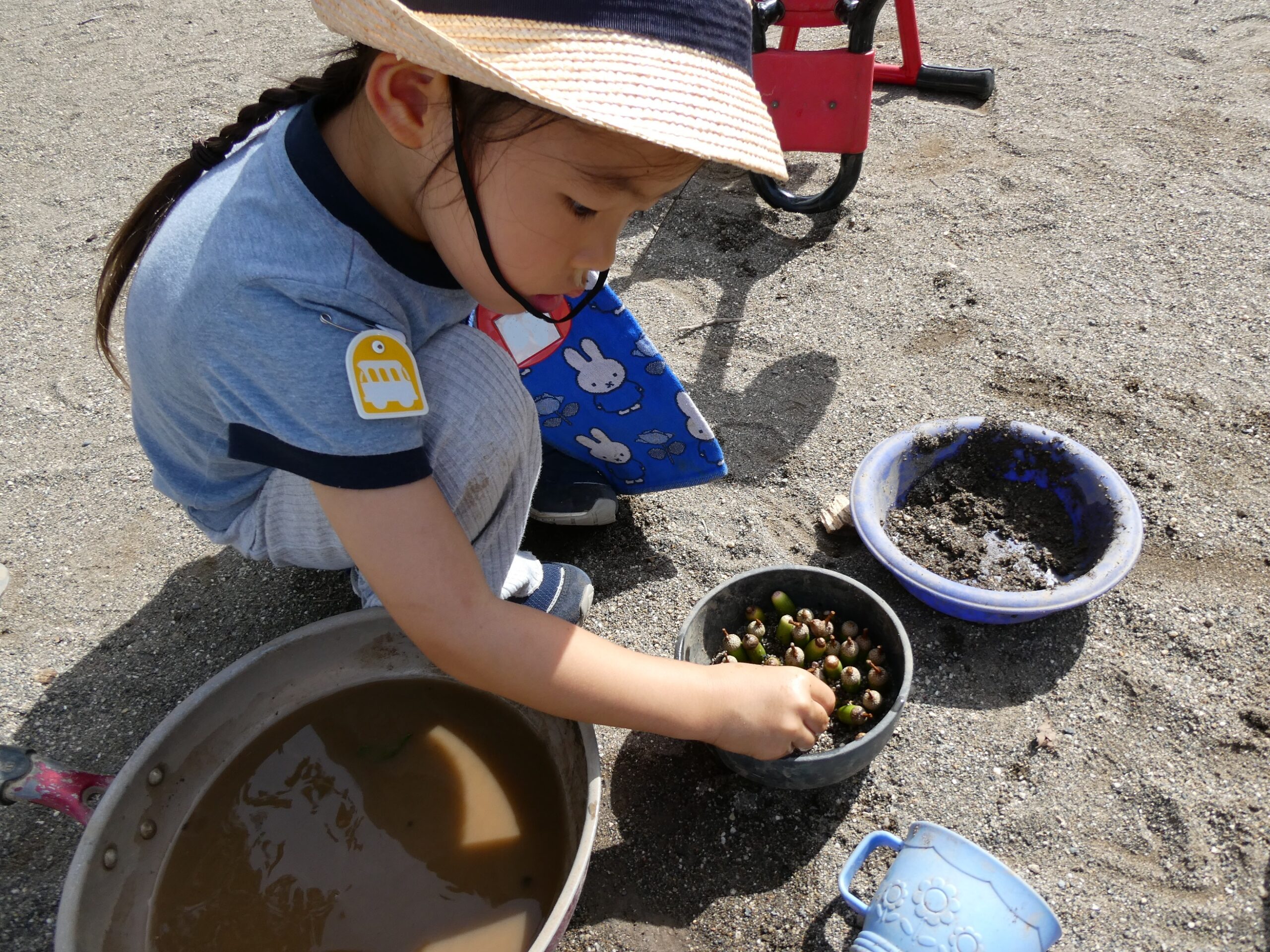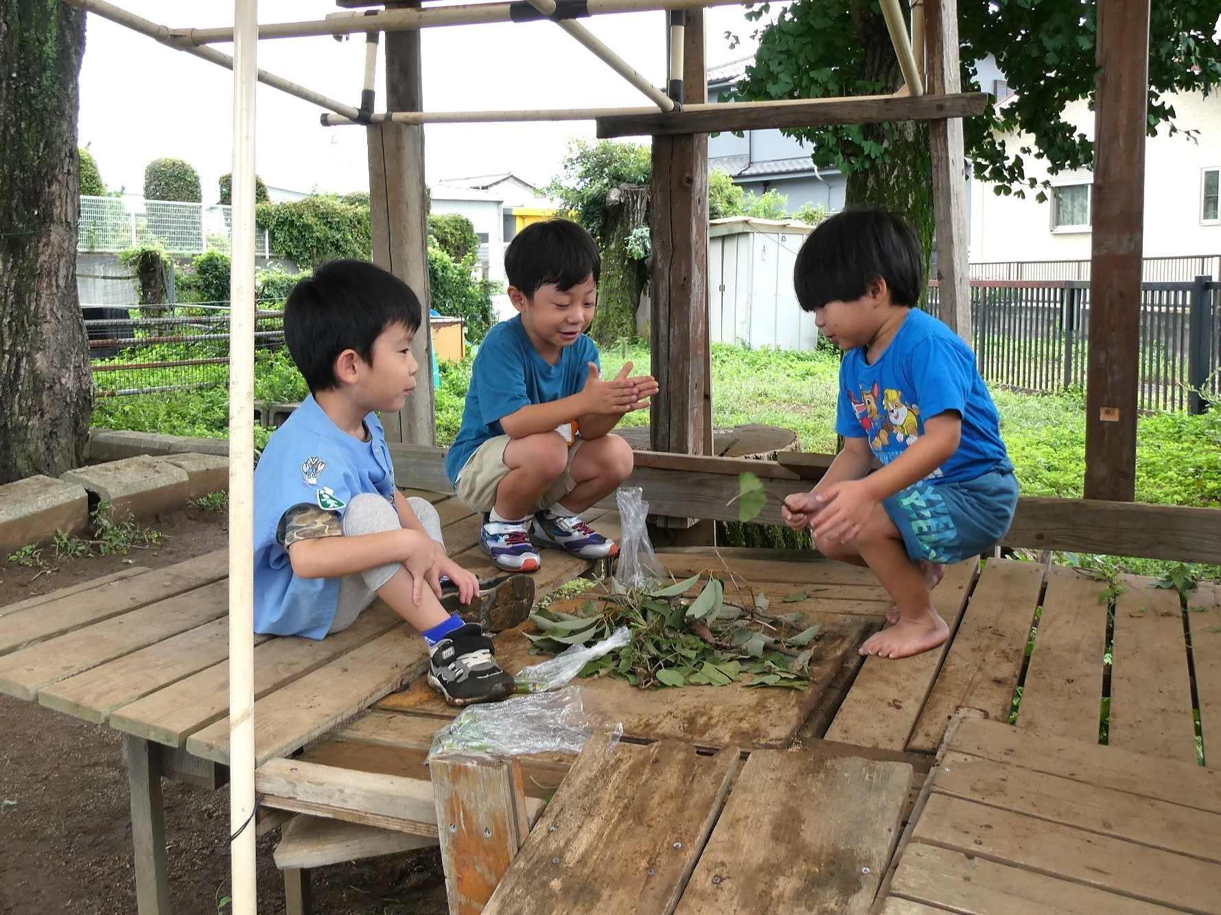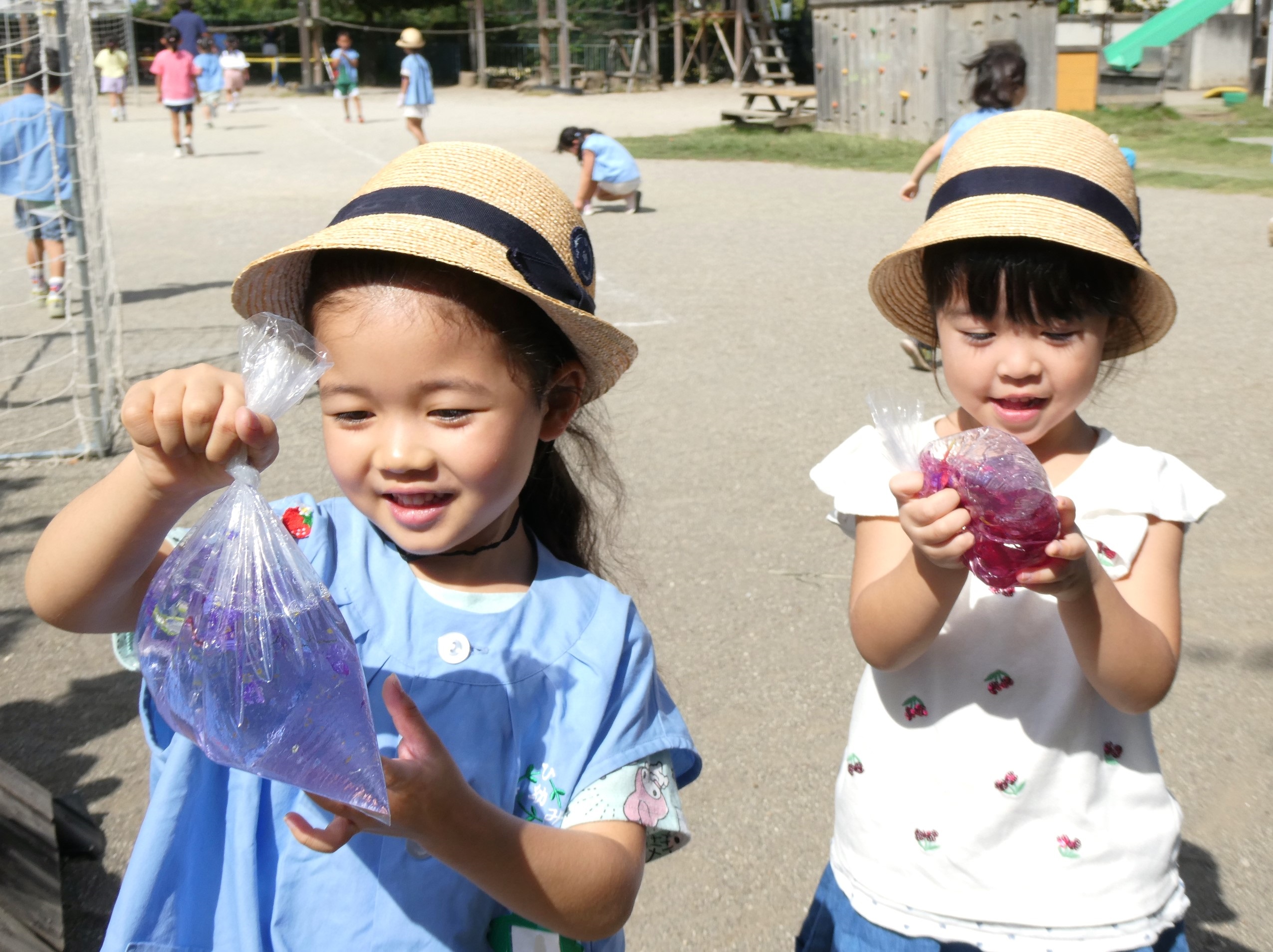 厳しい暑さもようやく落ち着き始め、外遊びに夢中になる子ども達の姿が見られています。身近な自然物を遊びに取り入れて楽しんだり、思い思いの遊びをつくり出したりする姿を紹介します!