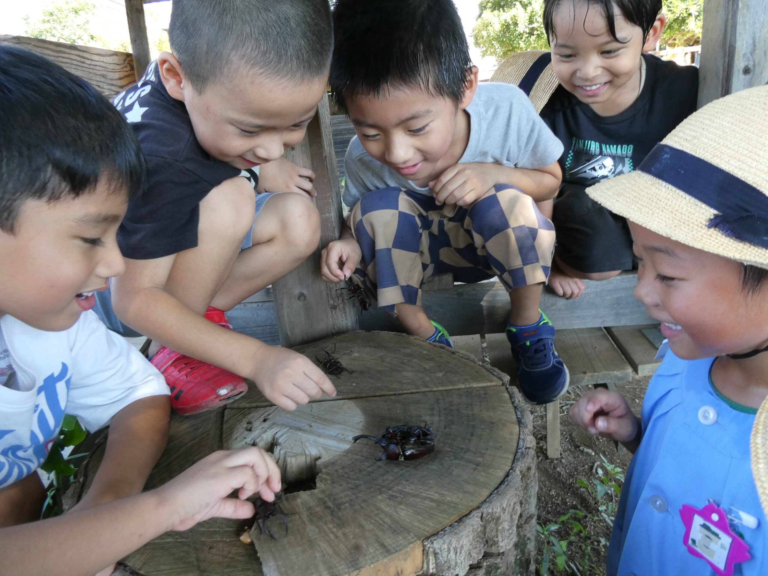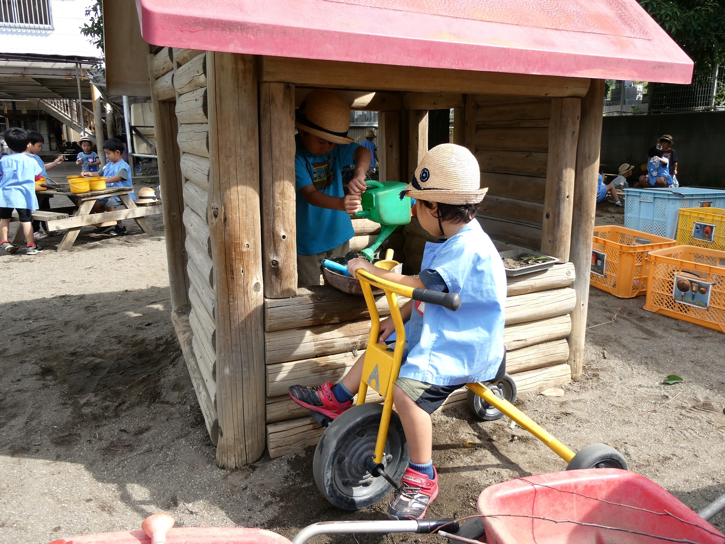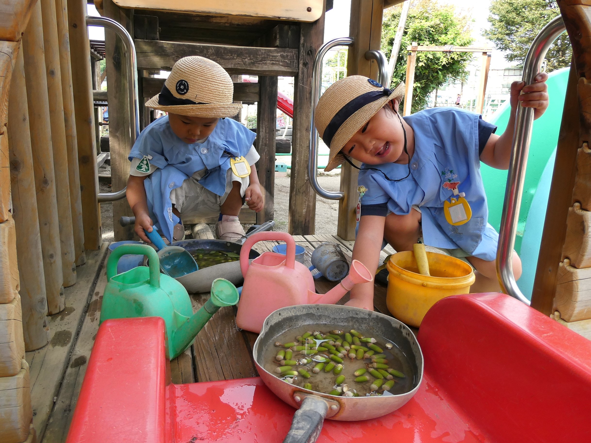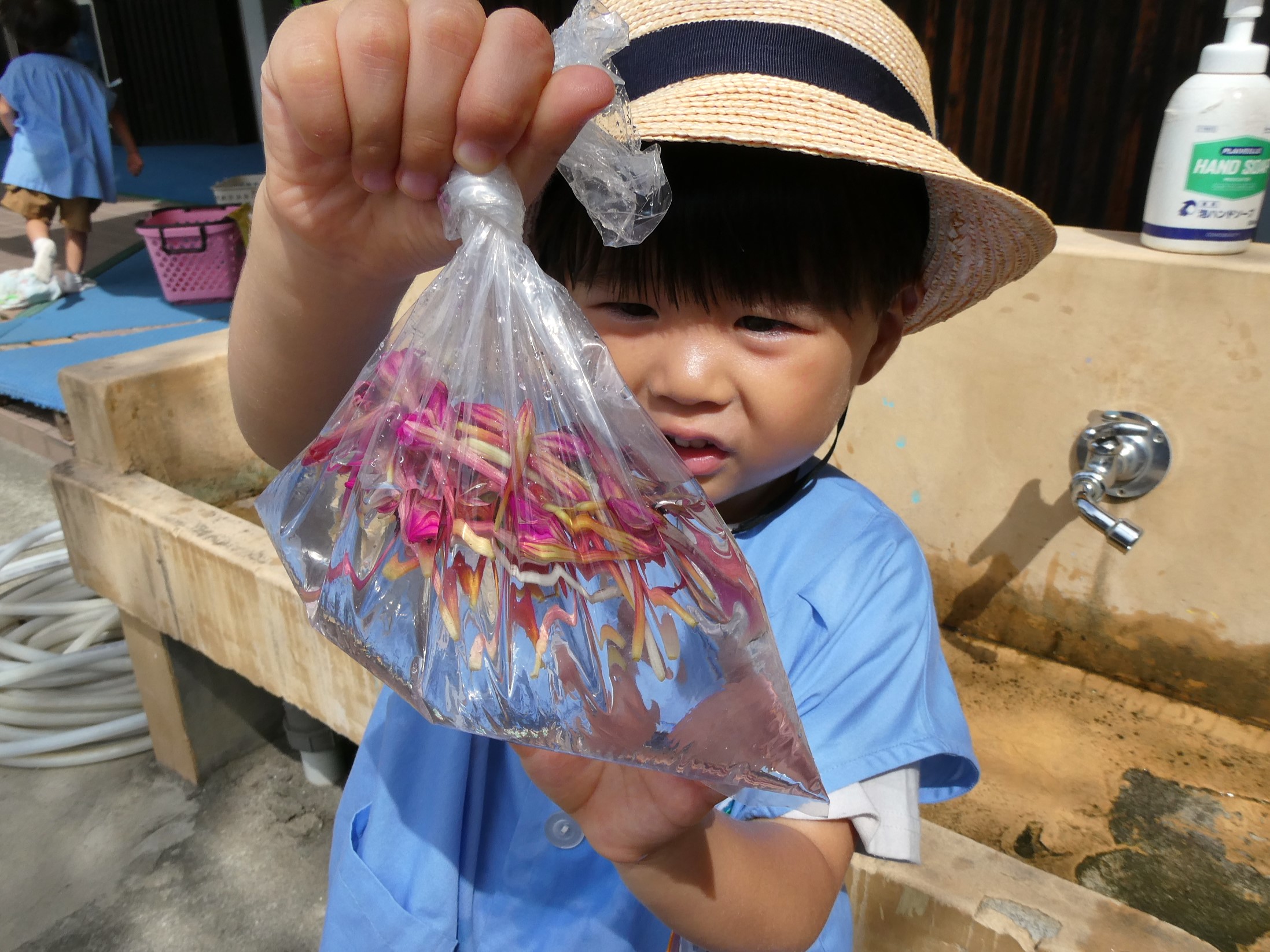 厳しい暑さもようやく落ち着き始め、外遊びに夢中になる子ども達の姿が見られています。身近な自然物を遊びに取り入れて楽しんだり、思い思いの遊びをつくり出したりする姿を紹介します!