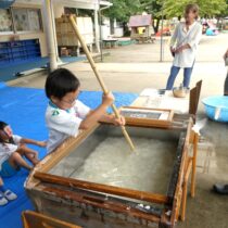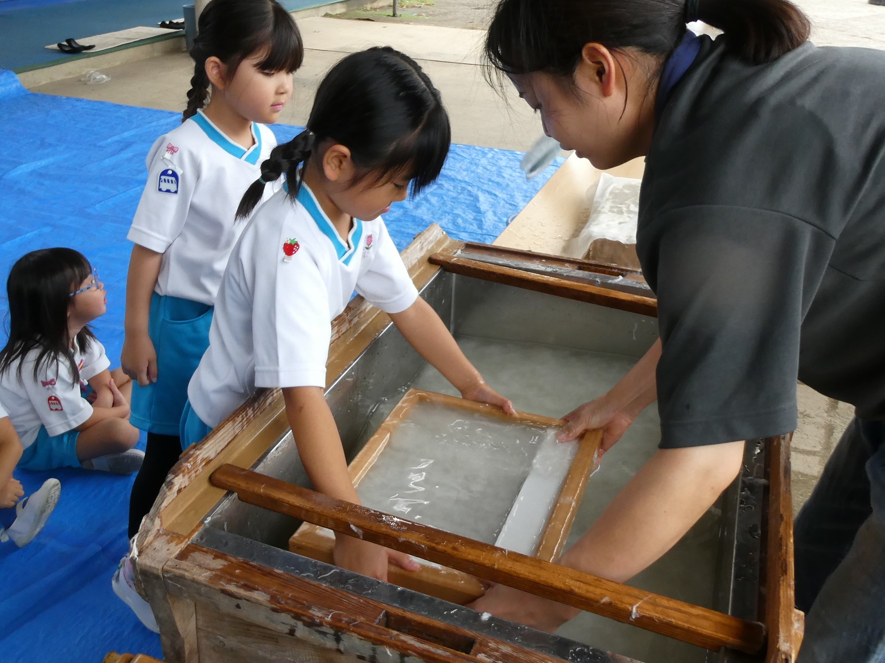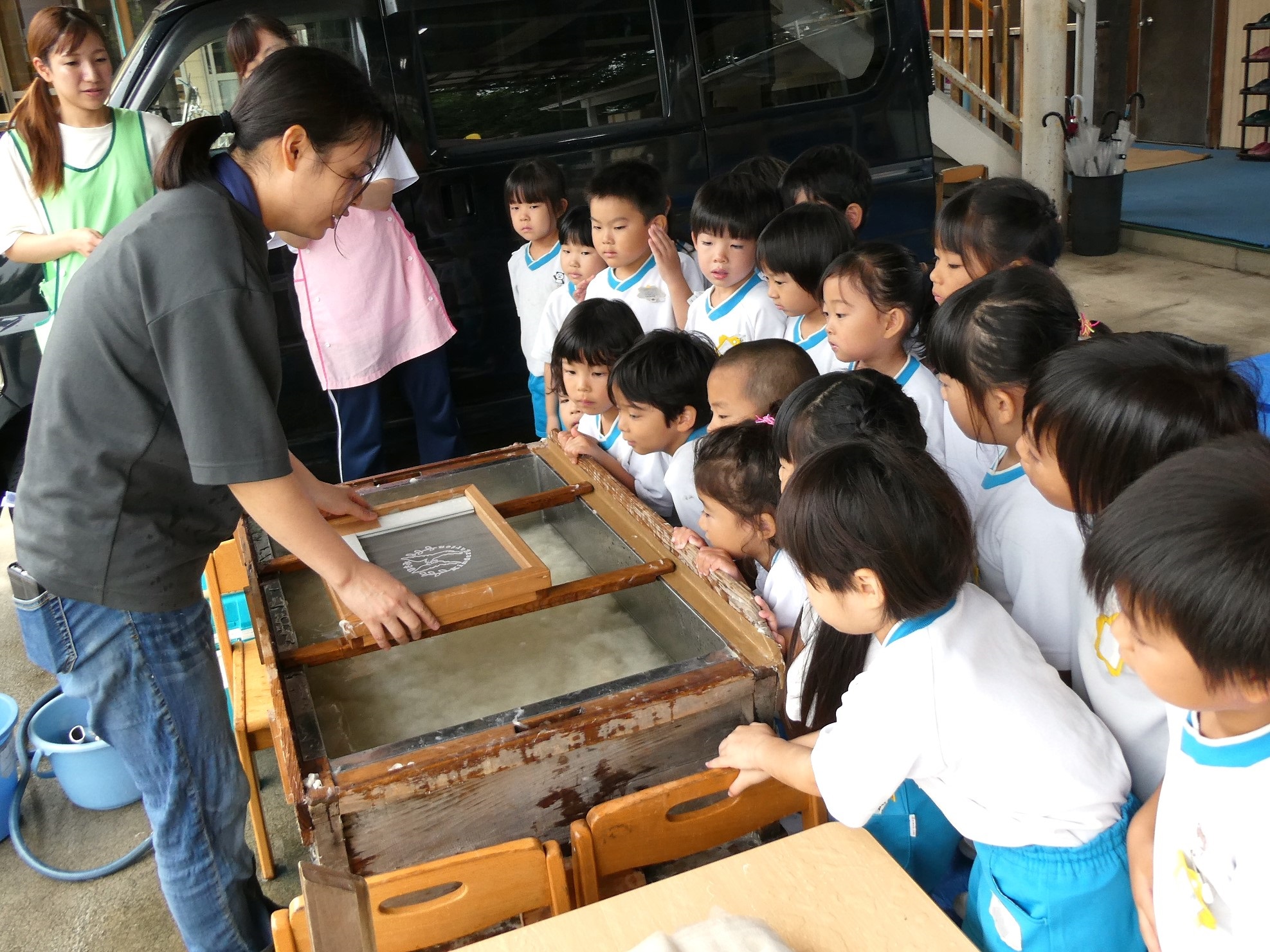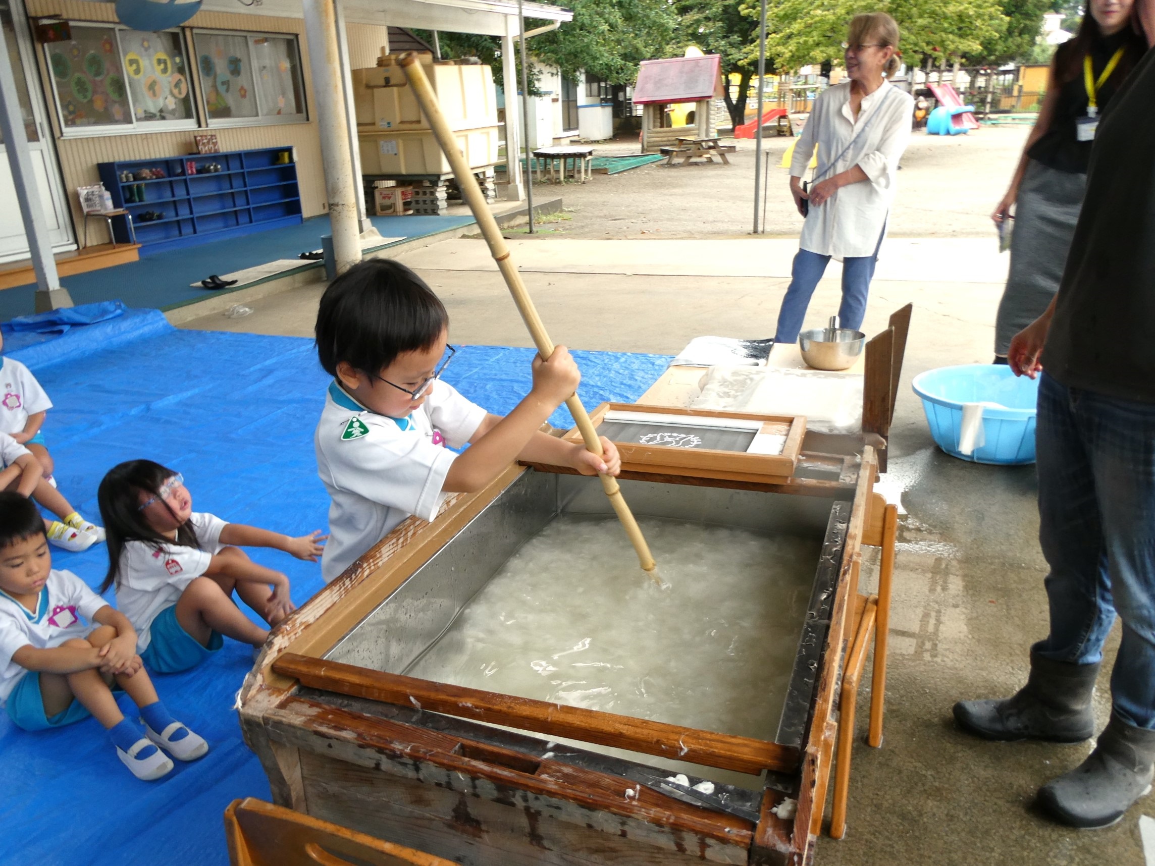 9月4日(木)年長児が和紙すきを体験しました。子ども達は一人ひとり丁寧に教えていただきながら手を動かし、和紙を手作り!完成した和紙は、来年3月に卒園するときに卒園証書となり、手渡される予定です。