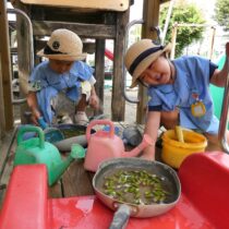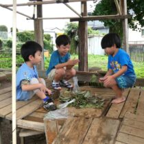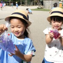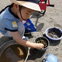 厳しい暑さもようやく落ち着き始め、外遊びに夢中になる子ども達の姿が見られています。身近な自然物を遊びに取り入れて楽しんだり、思い思いの遊びをつくり出したりする姿を紹介します!